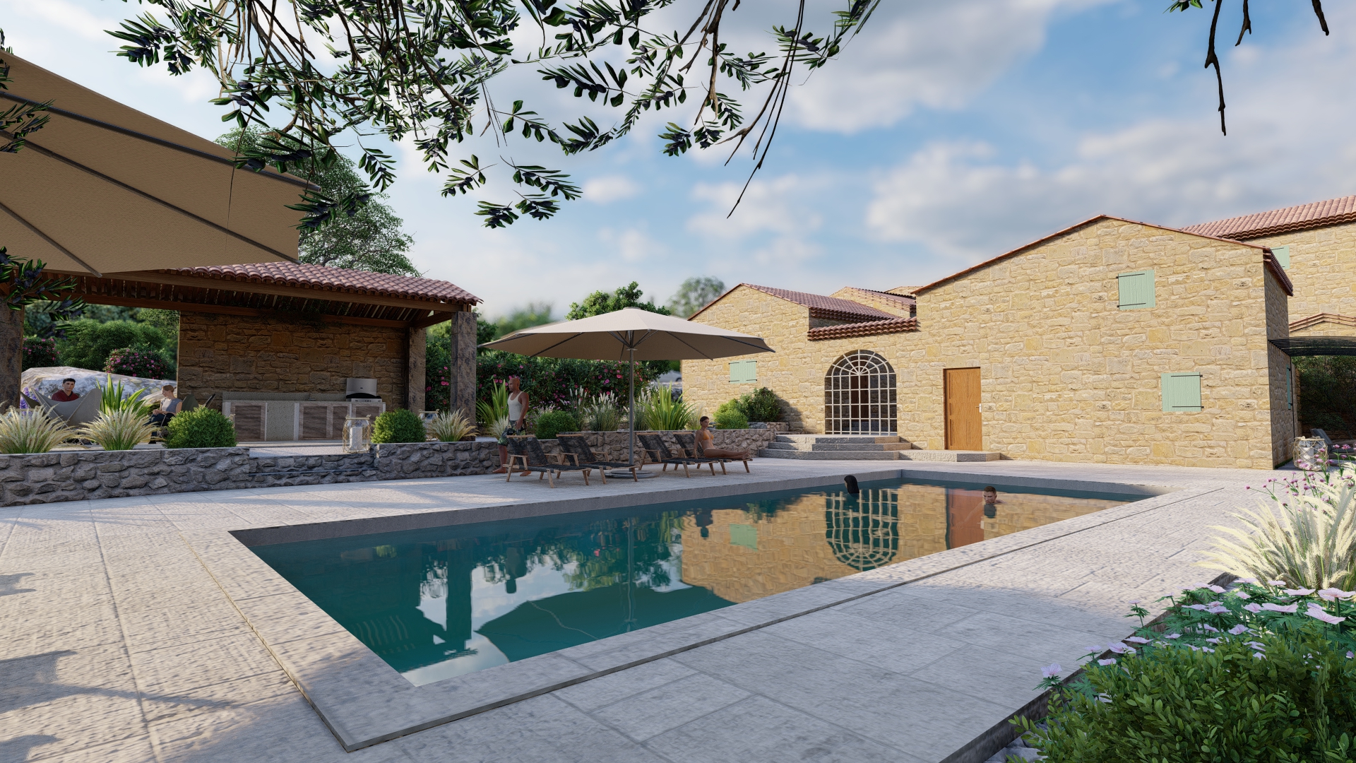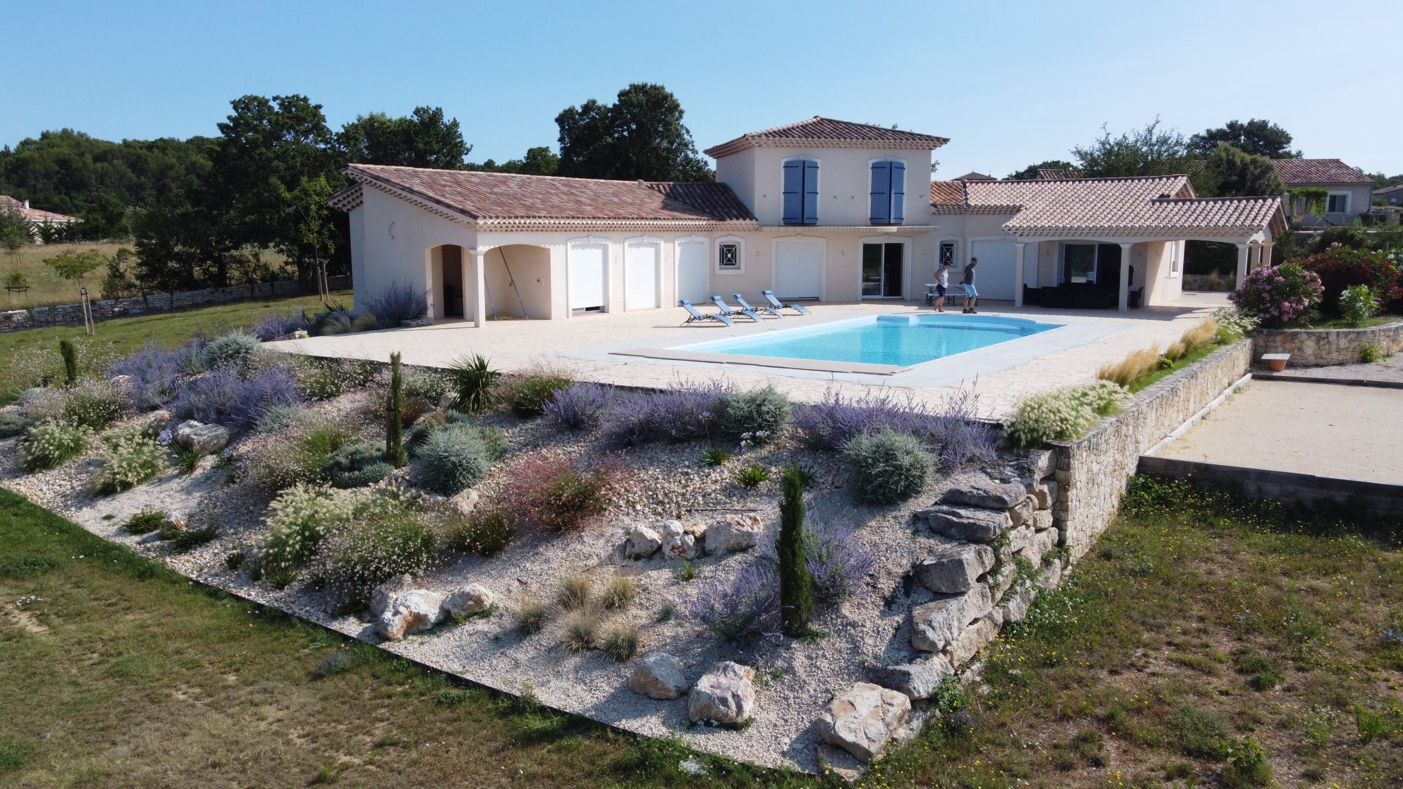 Nous concevons des extérieurs pensés pour le climat méditerranéen : résistants aux fortes chaleurs, sobres en consommation d’eau et capables d’absorber les excès.