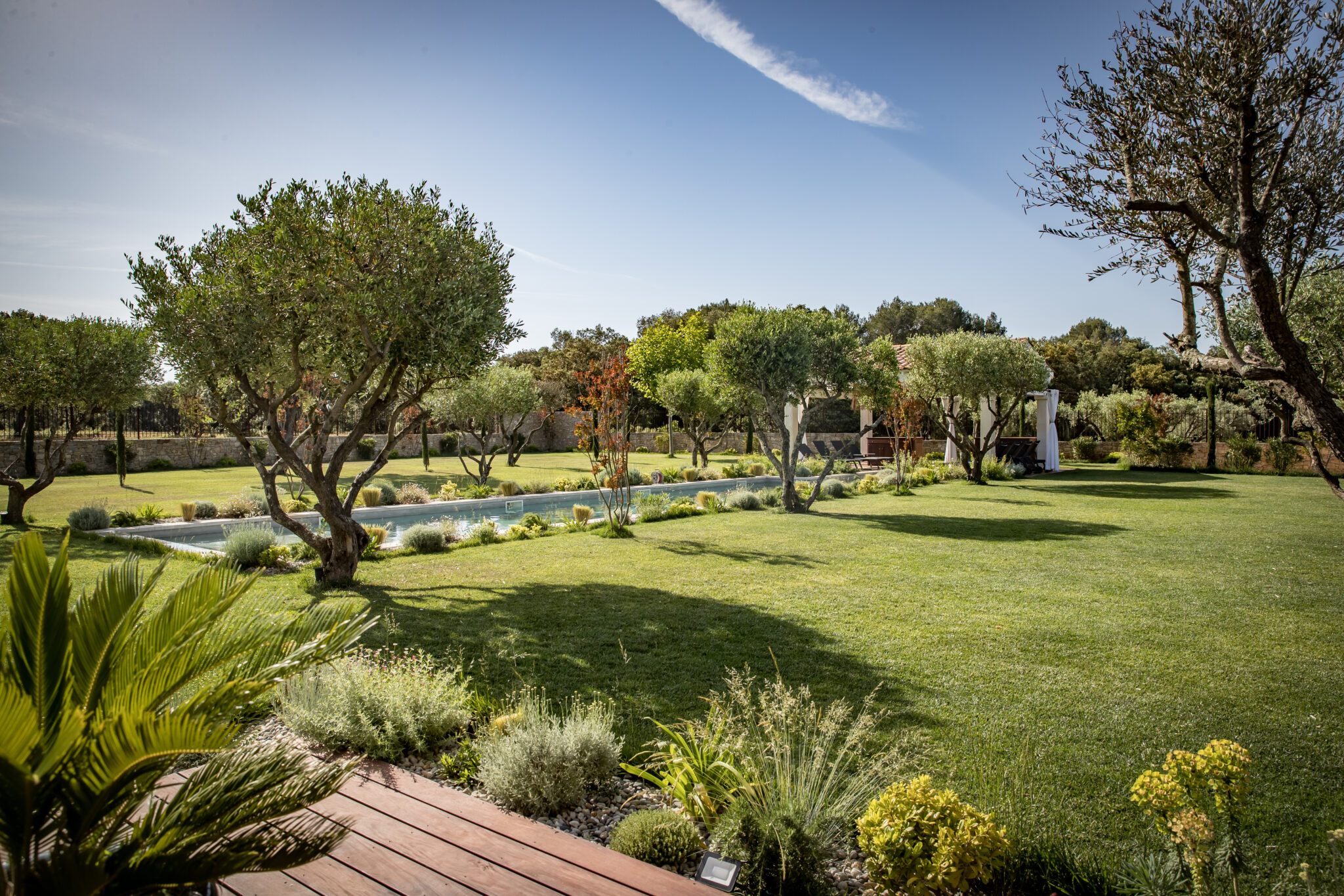 Nous concevons et réalisons des aménagements extérieurs de A à Z, pour créer un jardin cohérent, esthétique et parfaitement adapté au climat méditerranéen. Qu’il s’agisse d’un lieu de vie pour rassembler famille et amis ou d’un refuge végétal qui respire le Sud, vous profitez d’un projet sans contraintes, géré de bout en bout. Nous assurons également l’entretien !